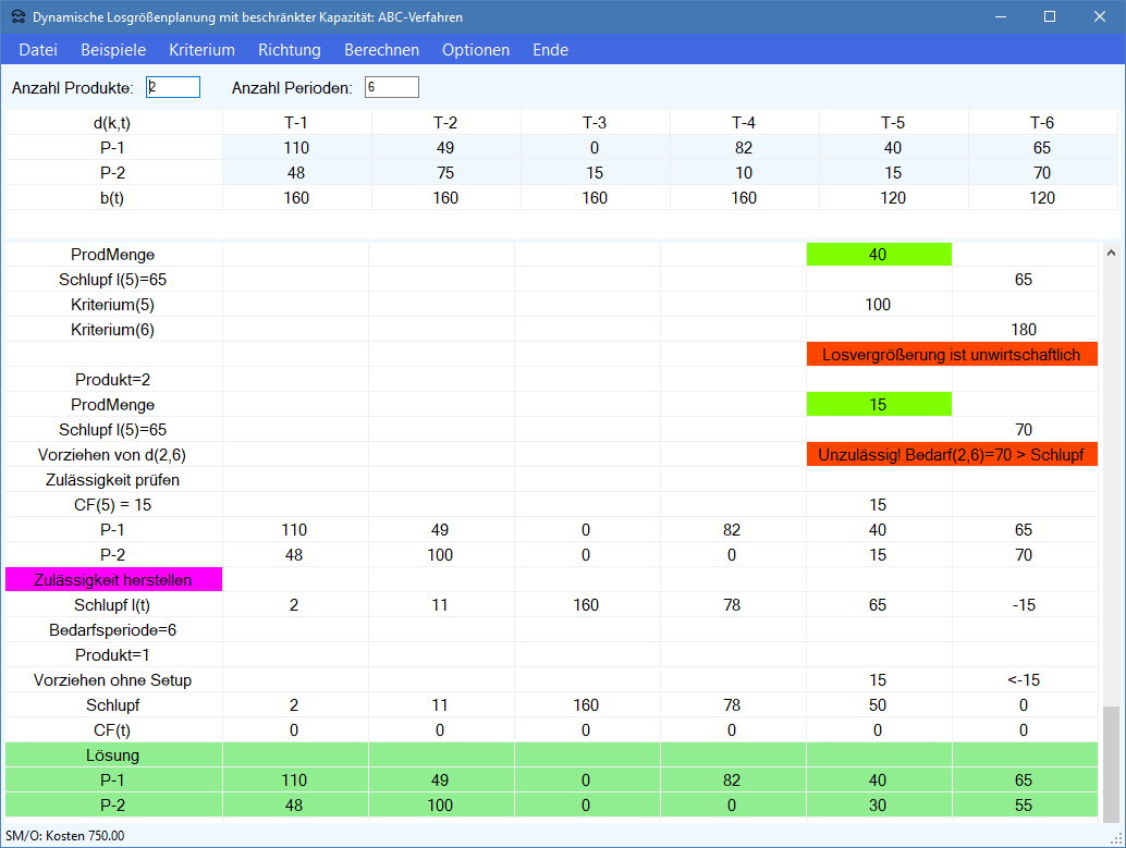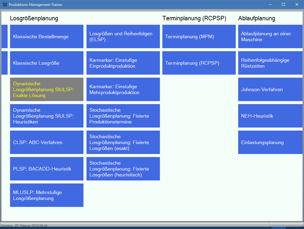 - Produktions-Management-Trainer, Modulgruppe Losgrößenplanung