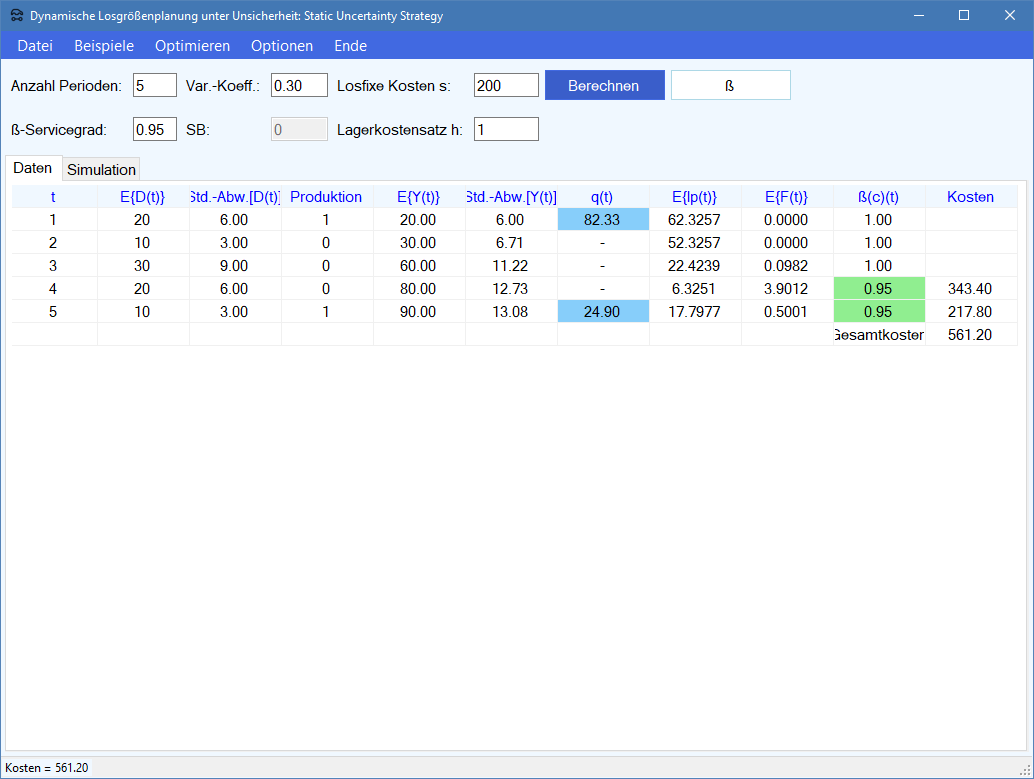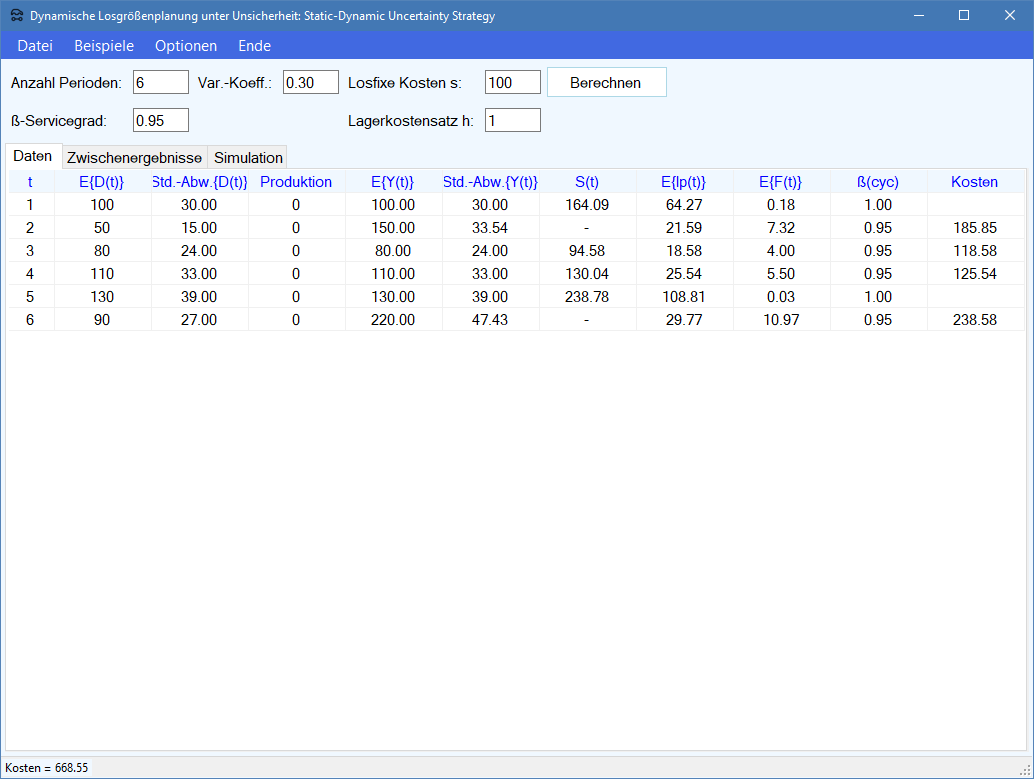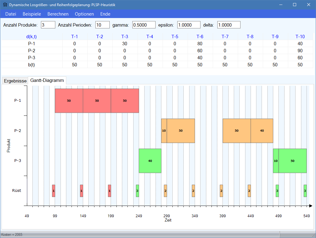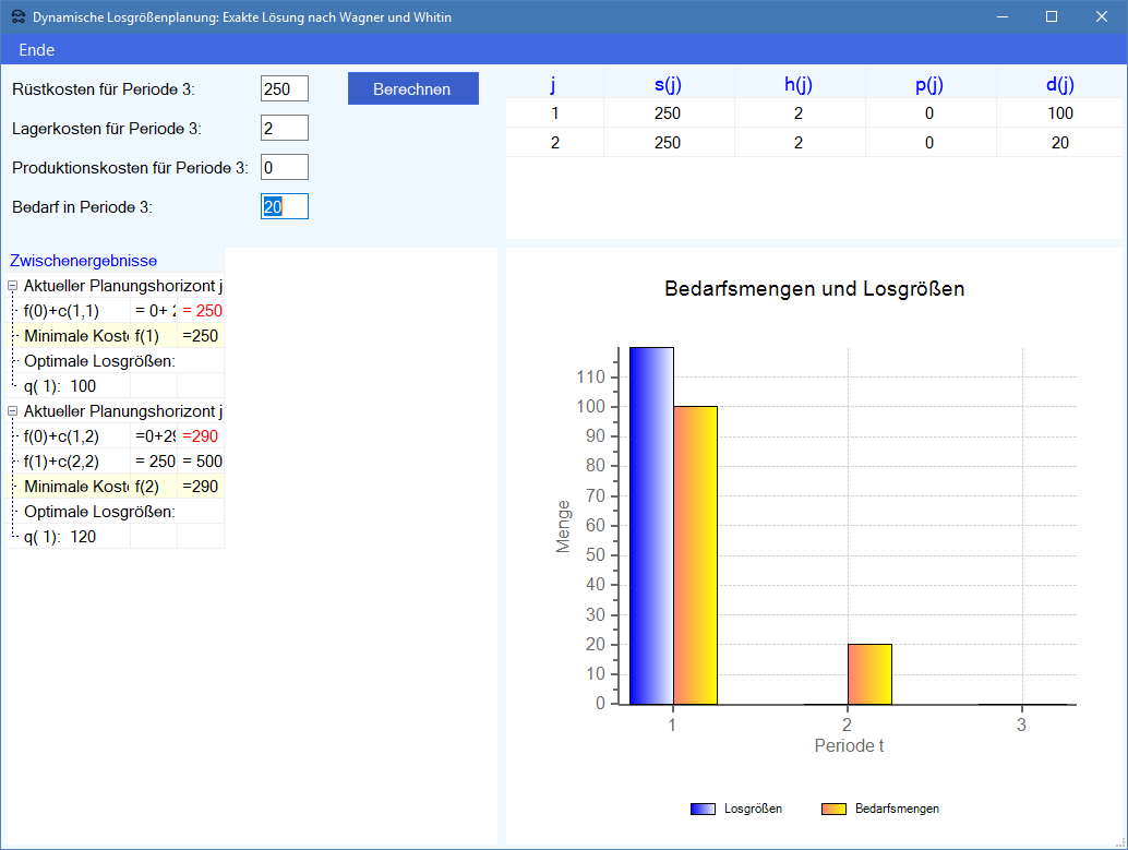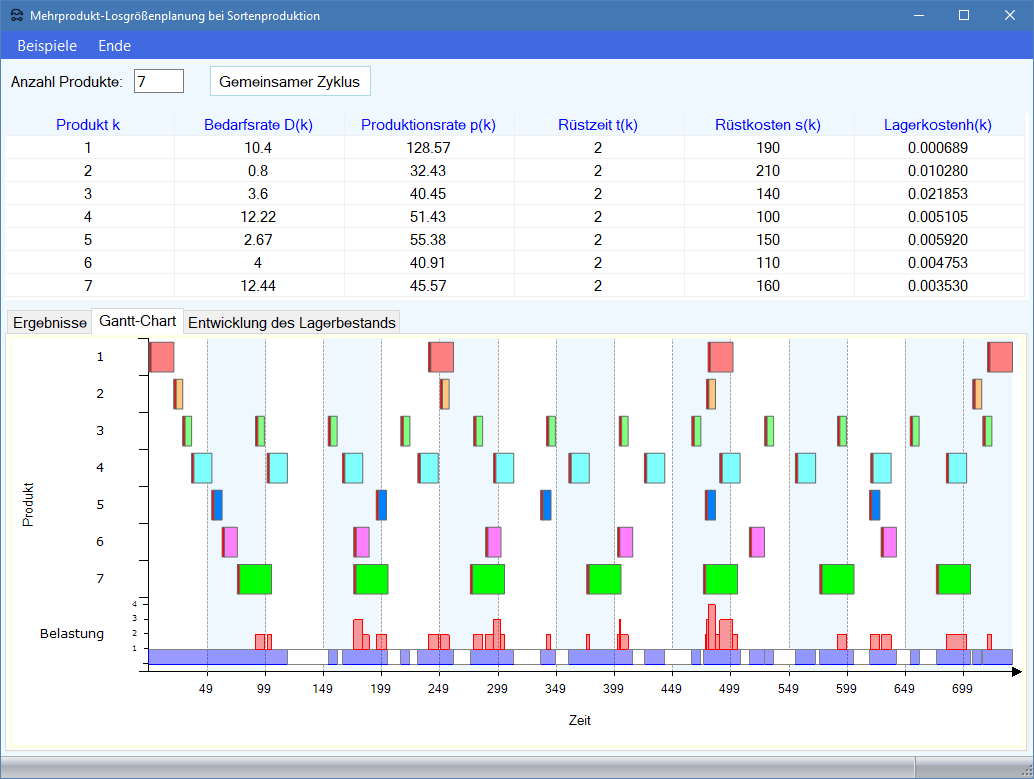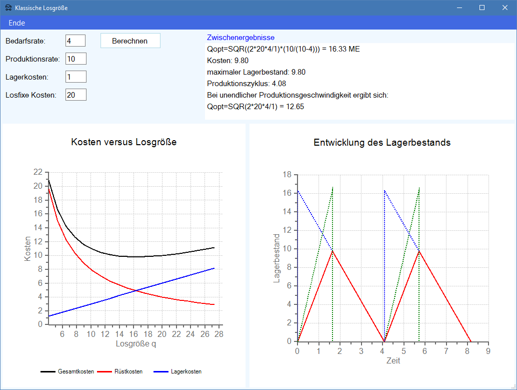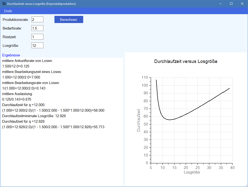 Losgrößenplanung im Produktions-Management-Trainer).