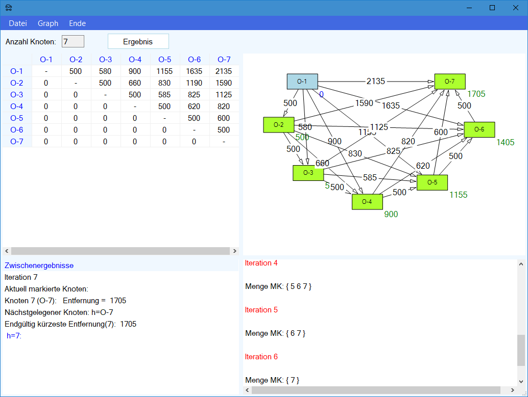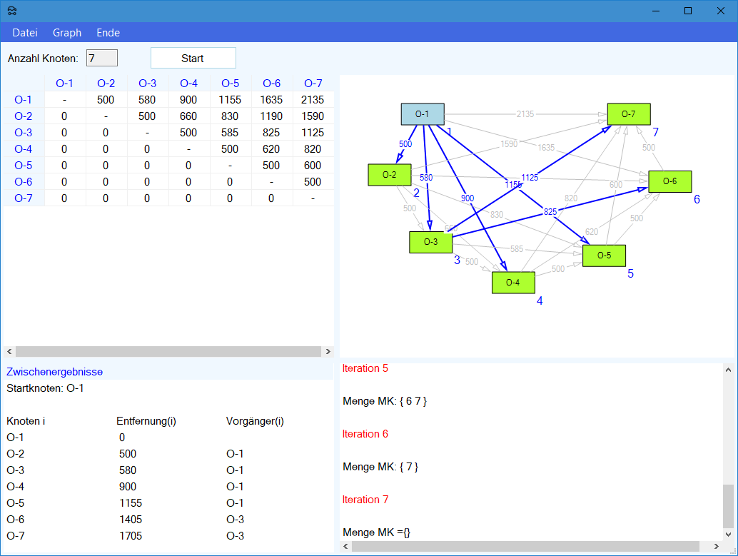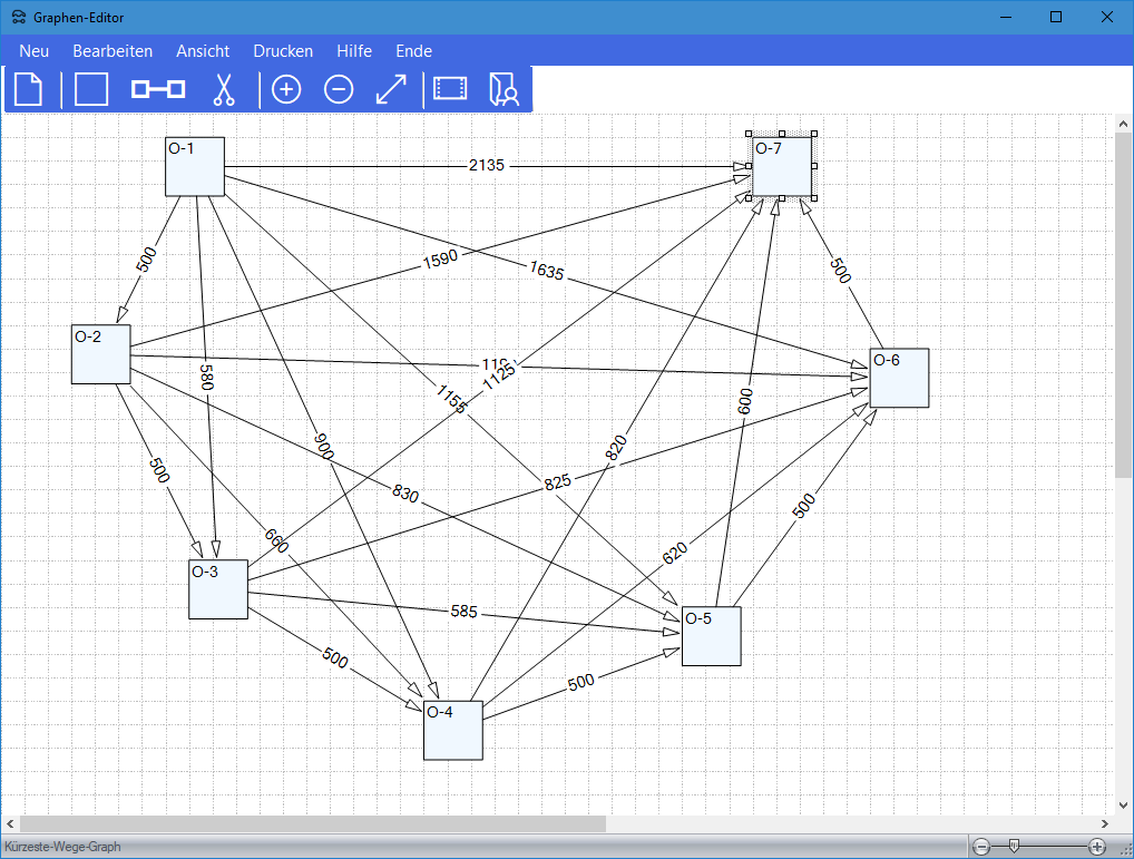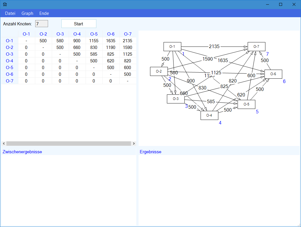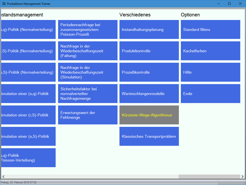 Modul Kürzeste-Wege-Modell im Produktions-Management-Trainer: