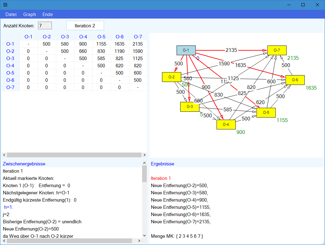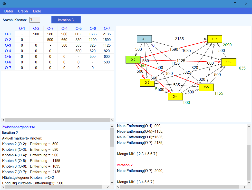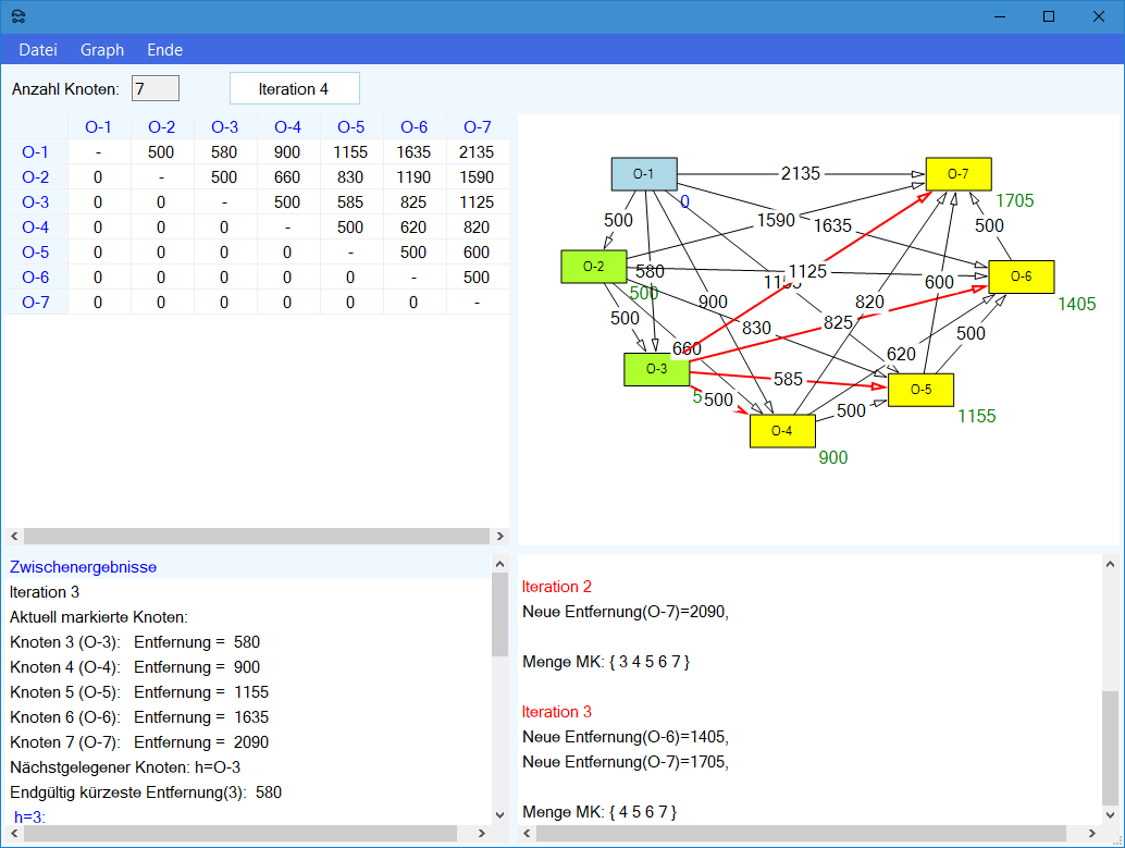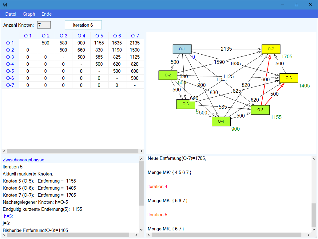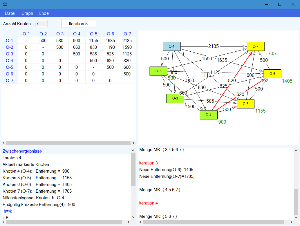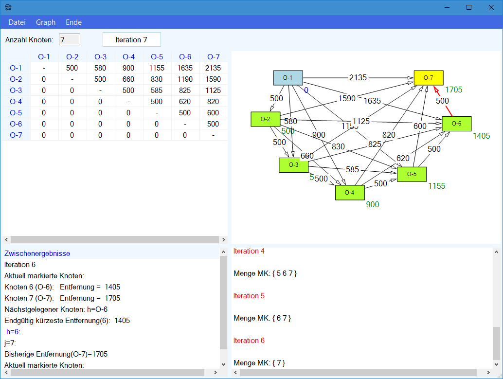 Modul Kürzeste-Wege-Modell im Produktions-Management-Trainer: