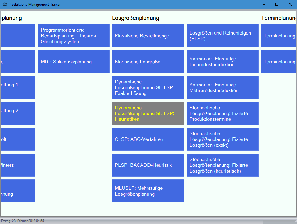 Modul Dynamische Losgrößenplanung SIULSP: Heuristiken im Produktions-Management-Trainer: