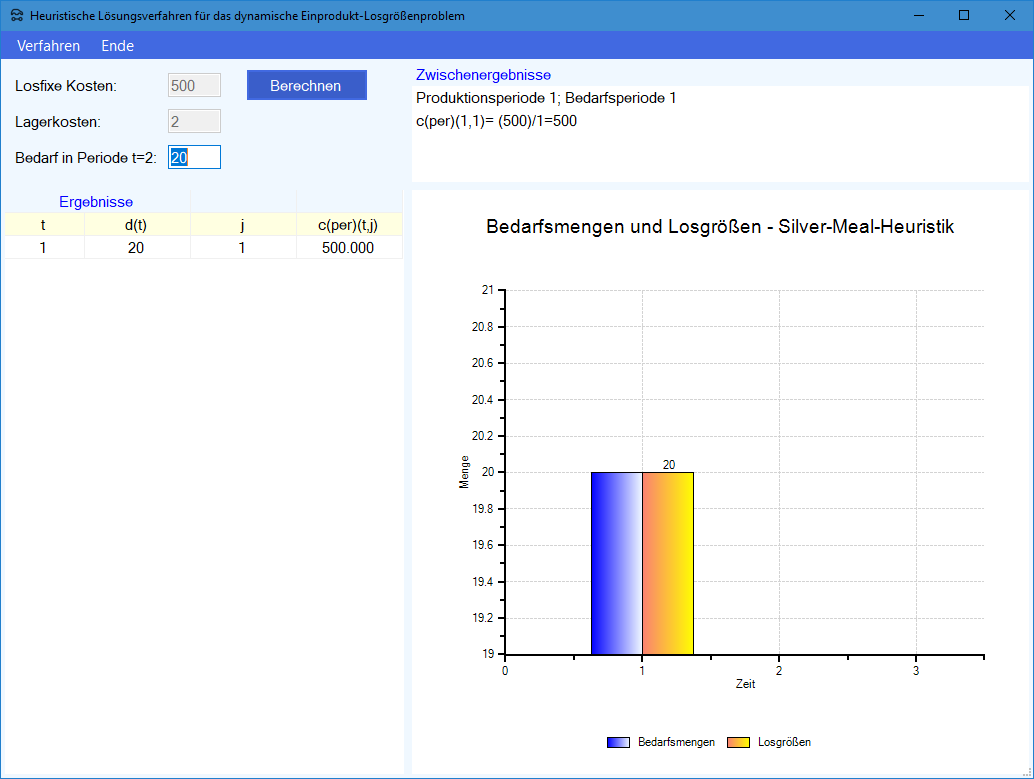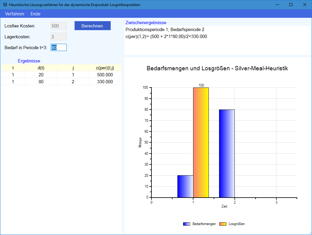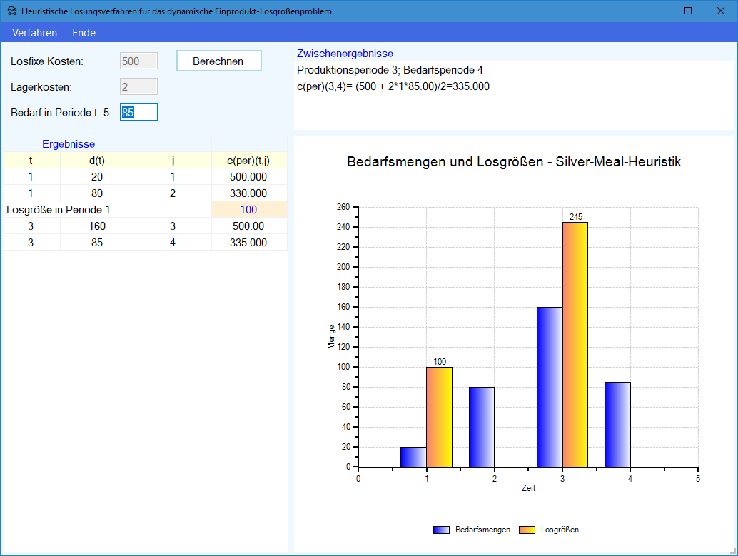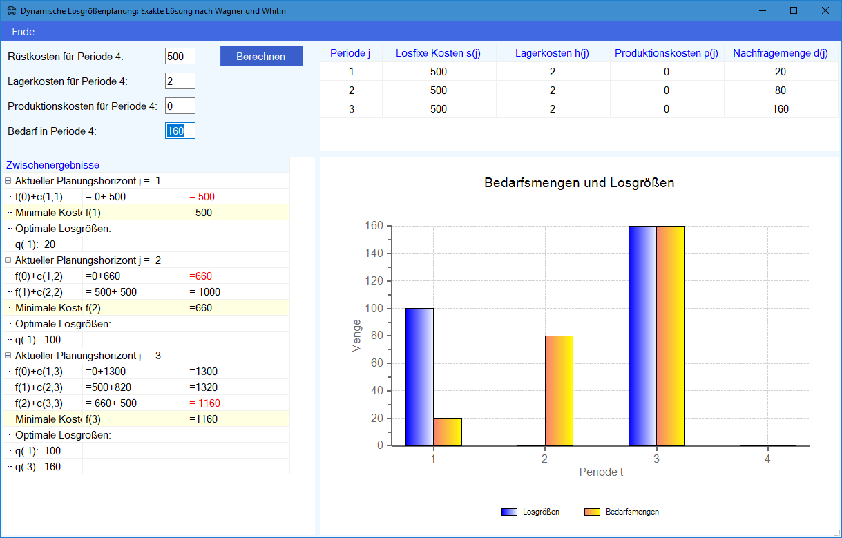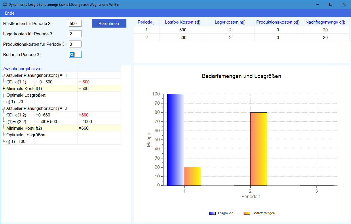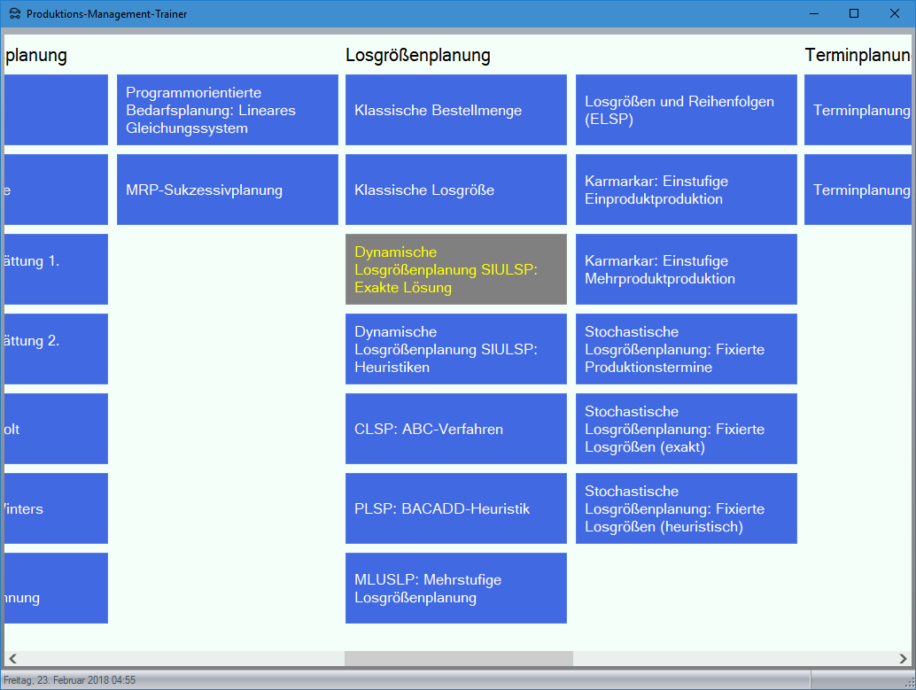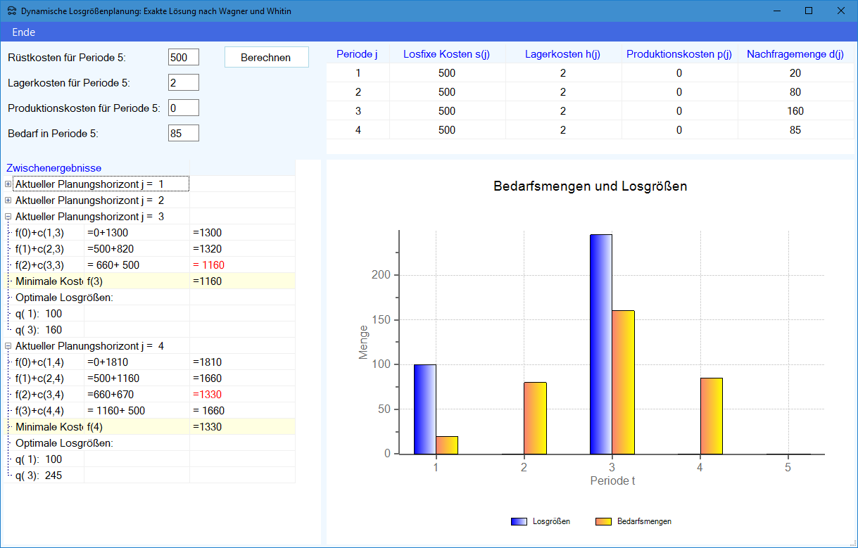 Modul Dynamische Losgrößenplanung SIULSP: Exakte Lösung im Produktions-Management-Trainer: