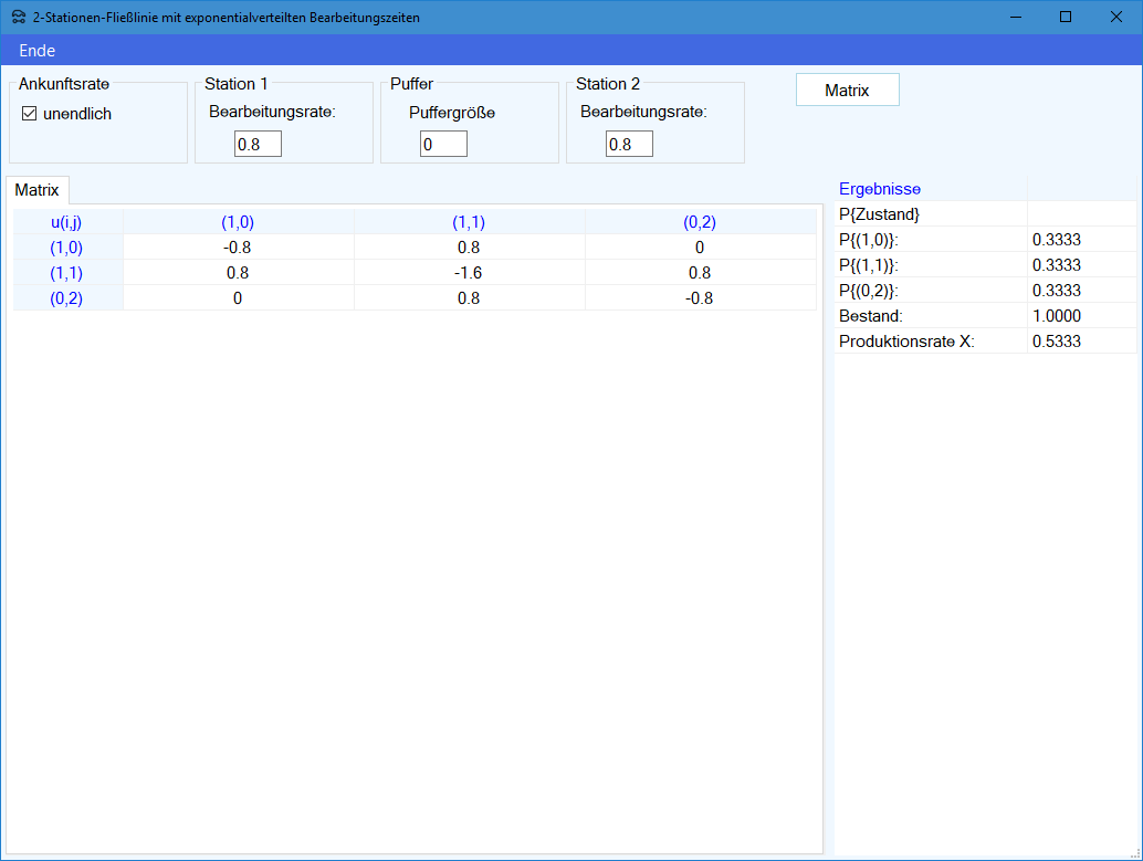 Analyse eines 2-Stationen-Systems mit begrenztem Puffer, erste Station niemals leer