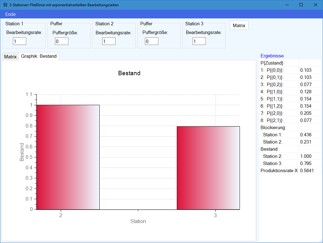 - Station 1 ist niemals unbeschäftigt, da der Materialnachschub unendlich schnell ist