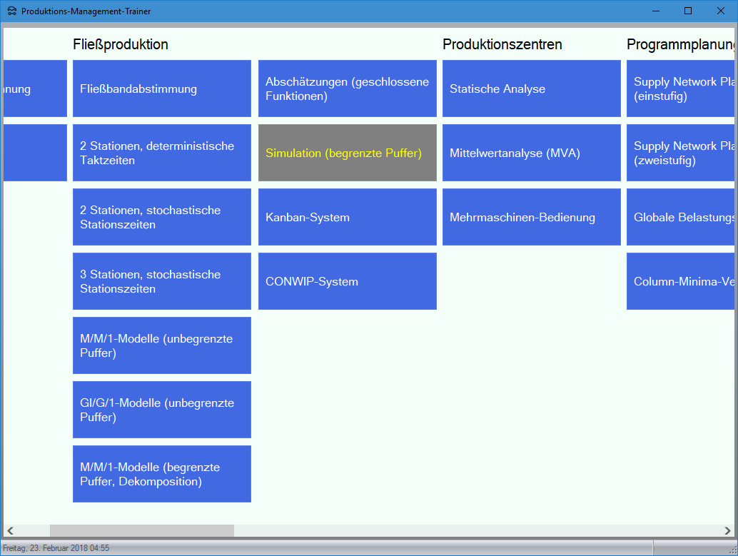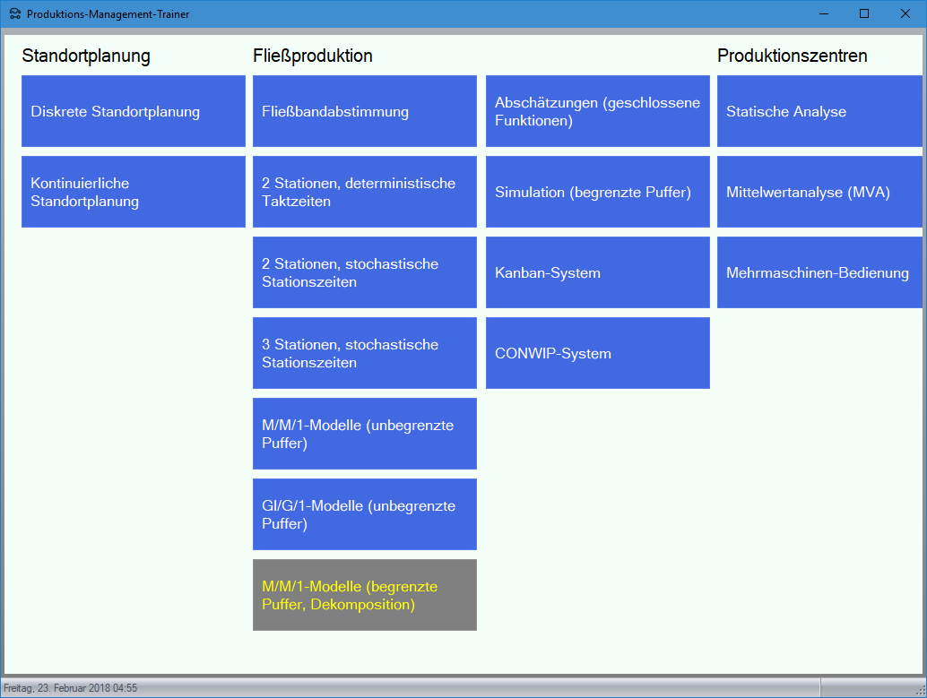 Modul M/M/1-Modelle (begrenzte Puffer, Dekomposition) im Produktions-Management-Trainer: