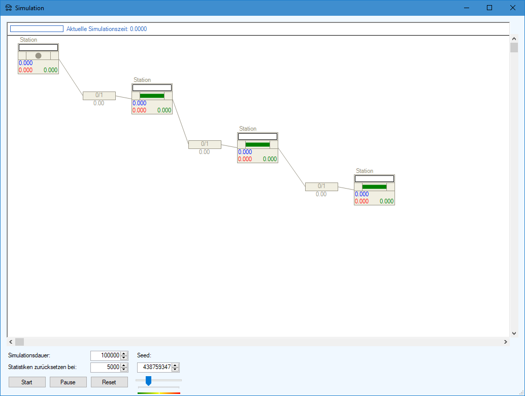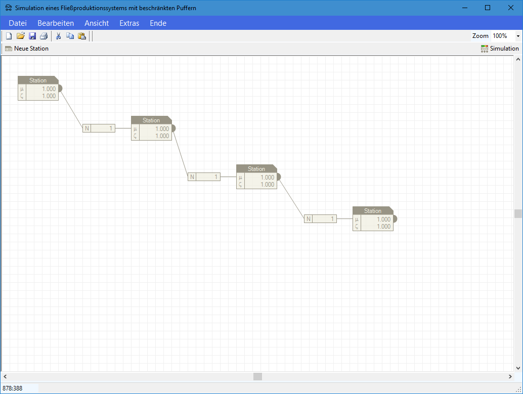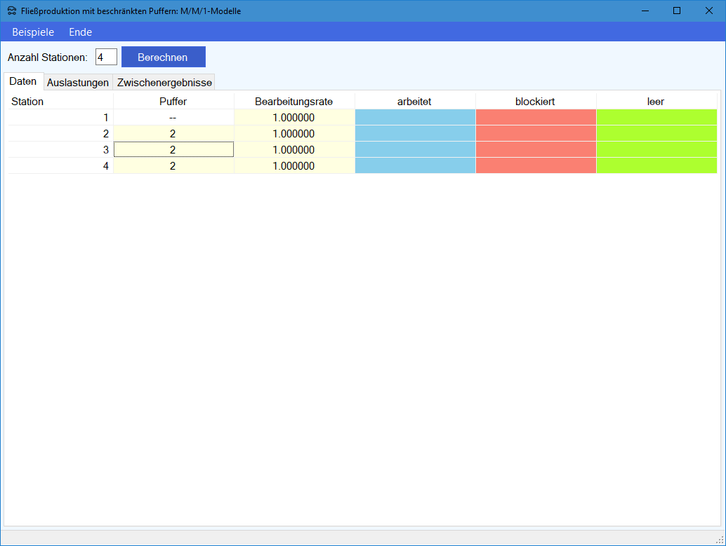 - ein unbegrenzter Puffer vor Station 1 (d.h. Station ist niemals leer)