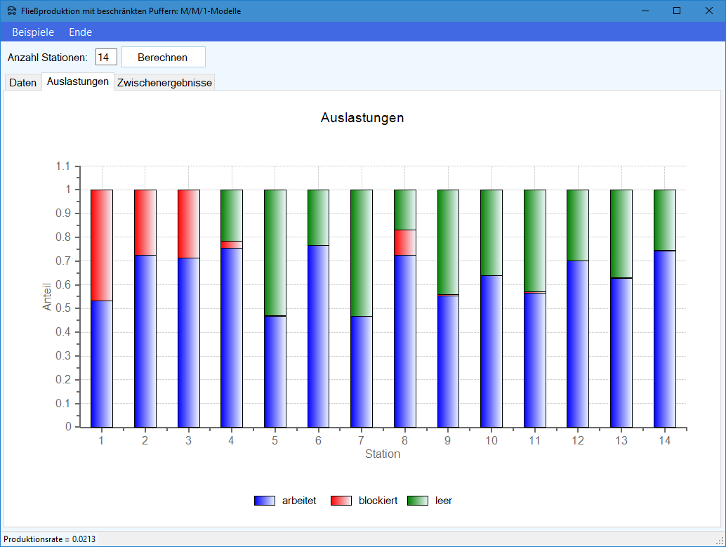 Da die letzte Station des gesamten Fließproduktionssystems niemals blockiert sein kann, gilt:
