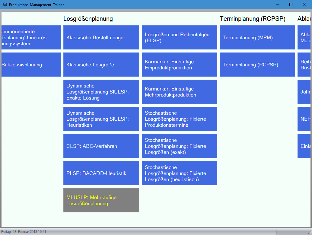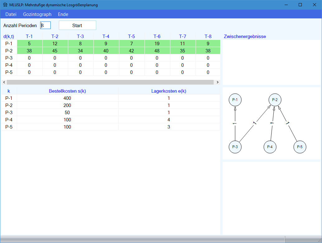 Modul Stochastische Losgrößenplanung: Fixierte Losgrößen (heuristisch) im Produktions-Management-Trainer: