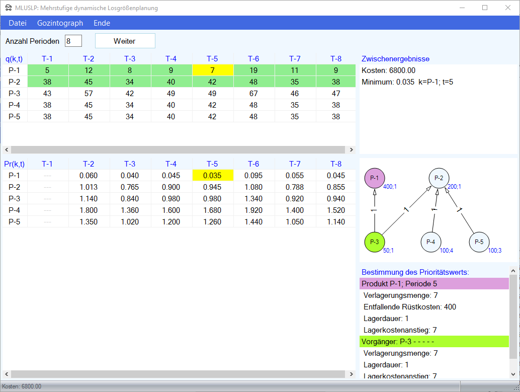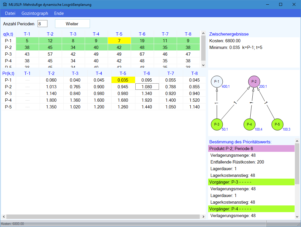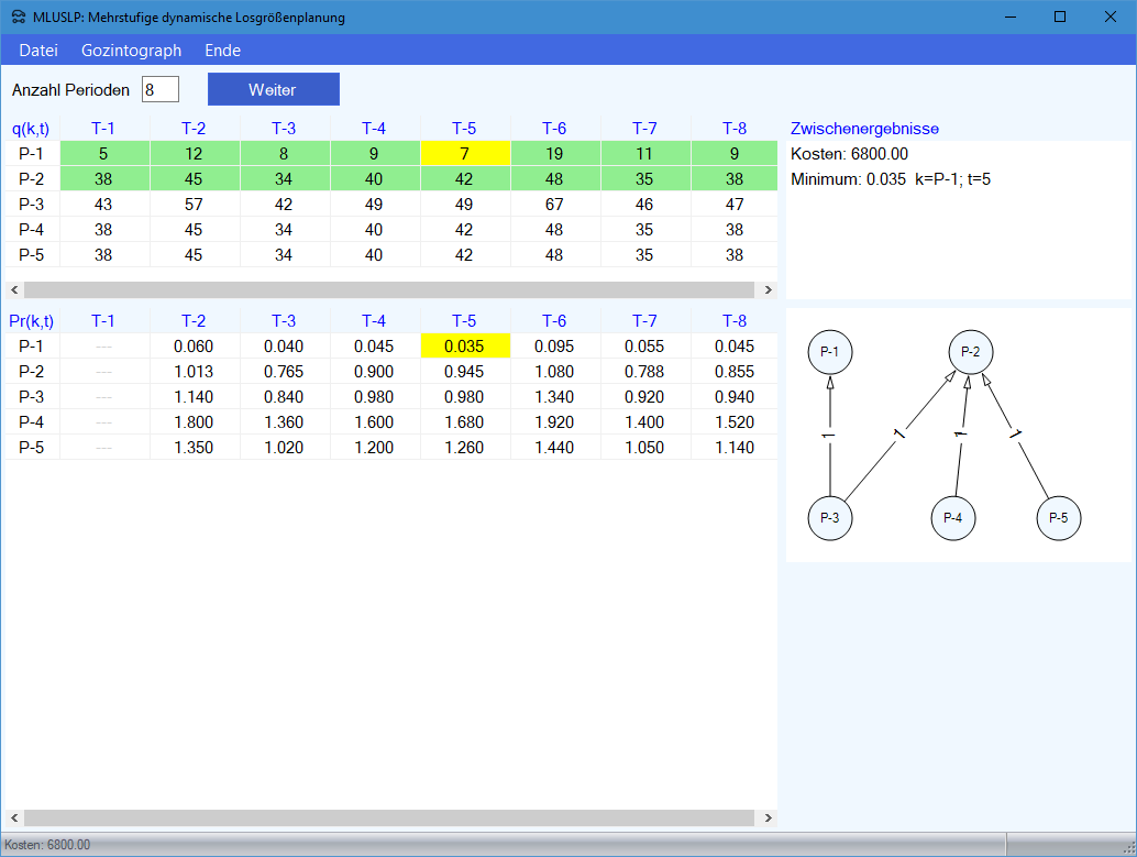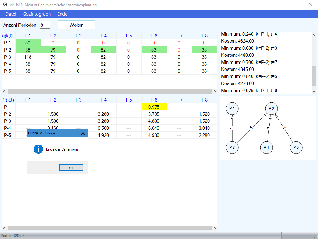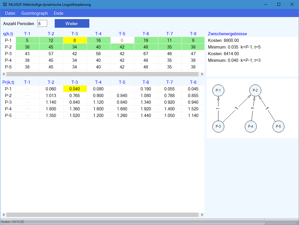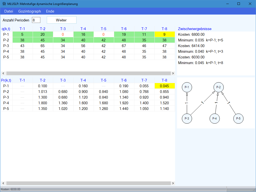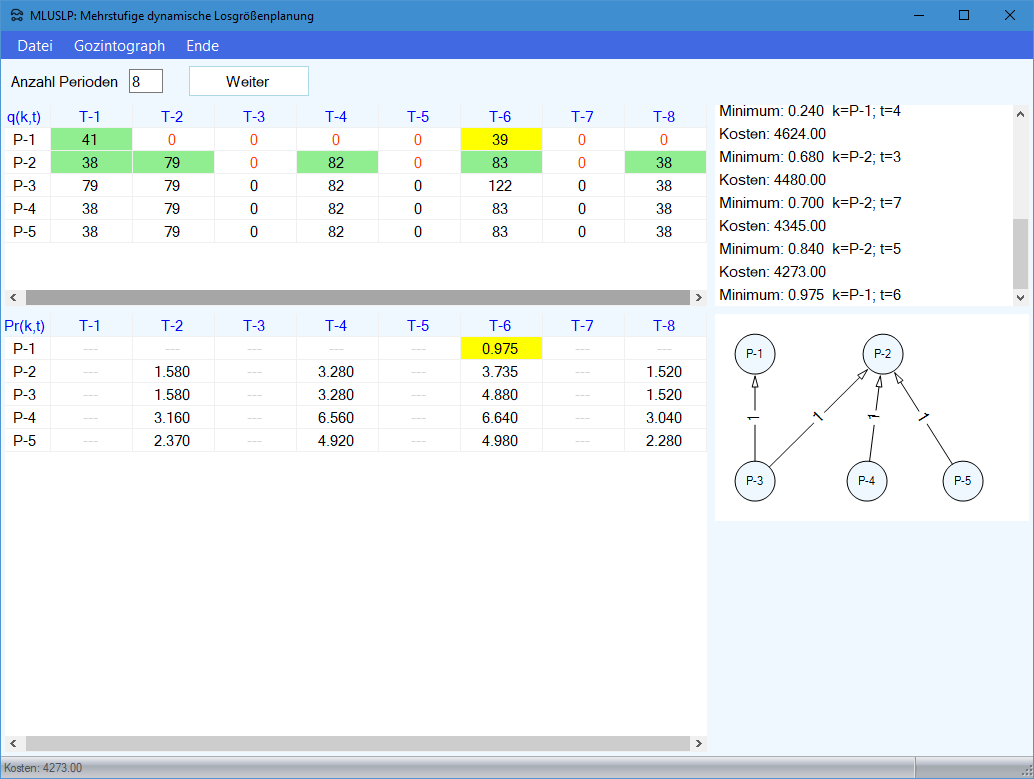 Dies ist die mehrstufige Version des SIULSP (d.h. des Wagner-Whitin-Problems).